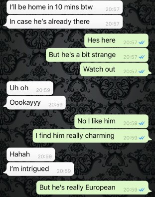 Perhaps it was my stupid fault for listening to my vagina instead of my brain, but there were a few signs I ignored. He video called me when we matched, which I’d never done before. When we were on the call, I did think he was being a unusual. In my head I rationalised it as “ah! he must be normal because he was concerned if I was a real person or not, like any other reasonable person would be.” He also suggested meeting for a drink first to screen me properly but I told him I was in my PJs and couldn’t be bothered. I took these things to mean he was normal enough to have over.